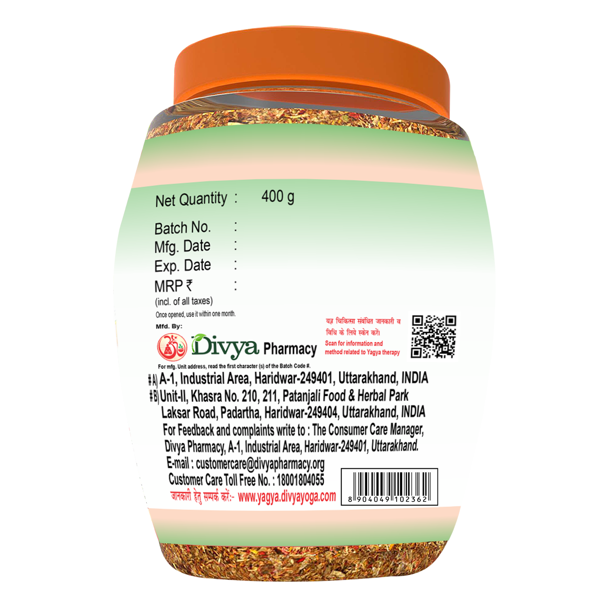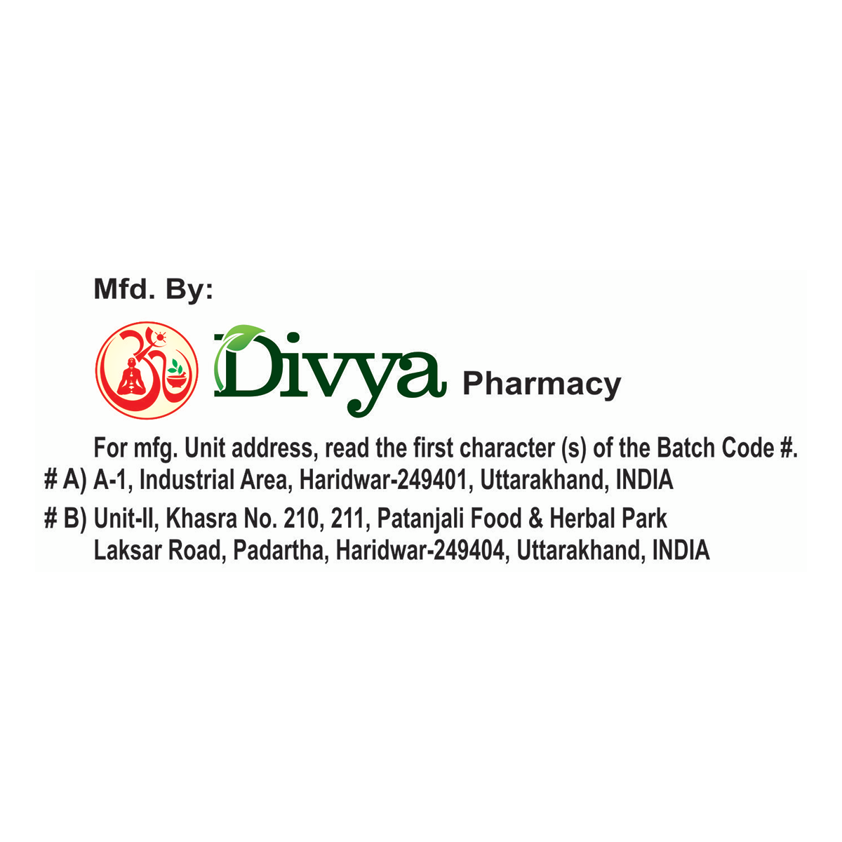 Manufacturer: | Divya Pharmacy, A-1, Industrial Area, Haridwar-249401 Uttarakhand, India |